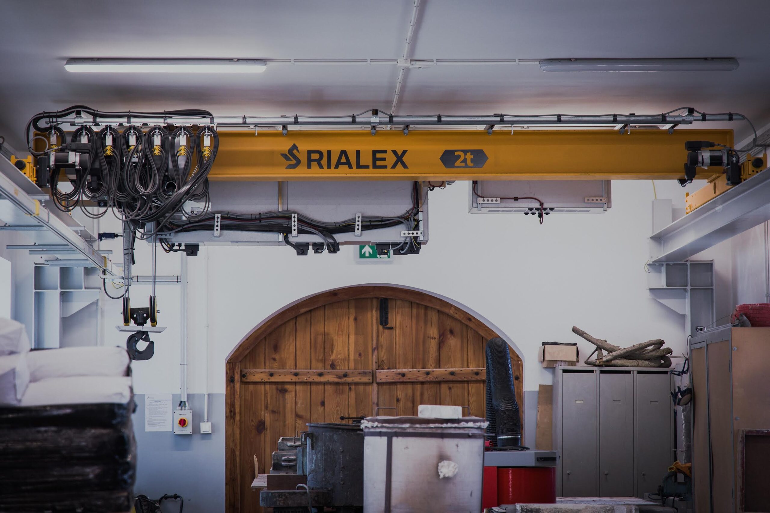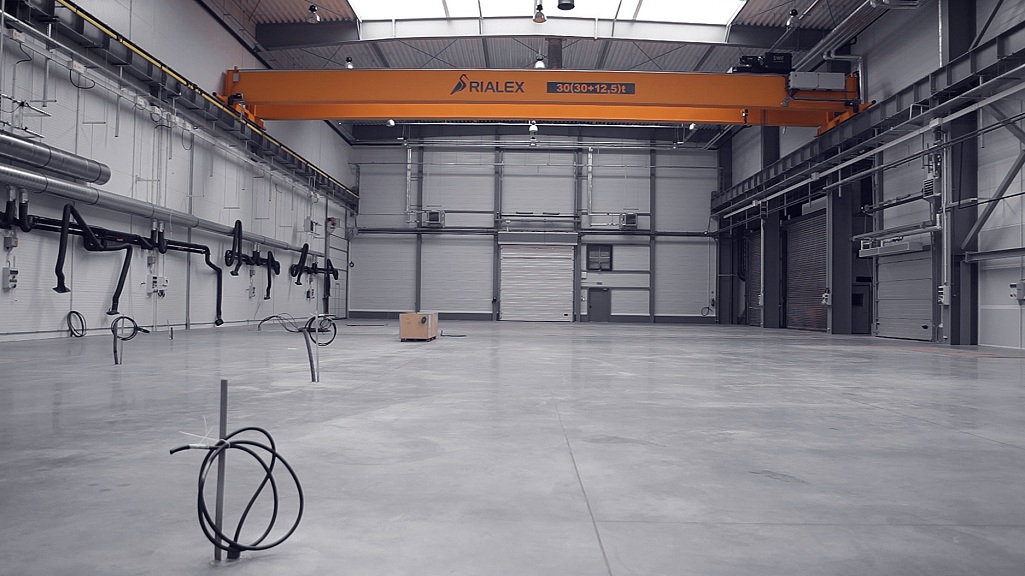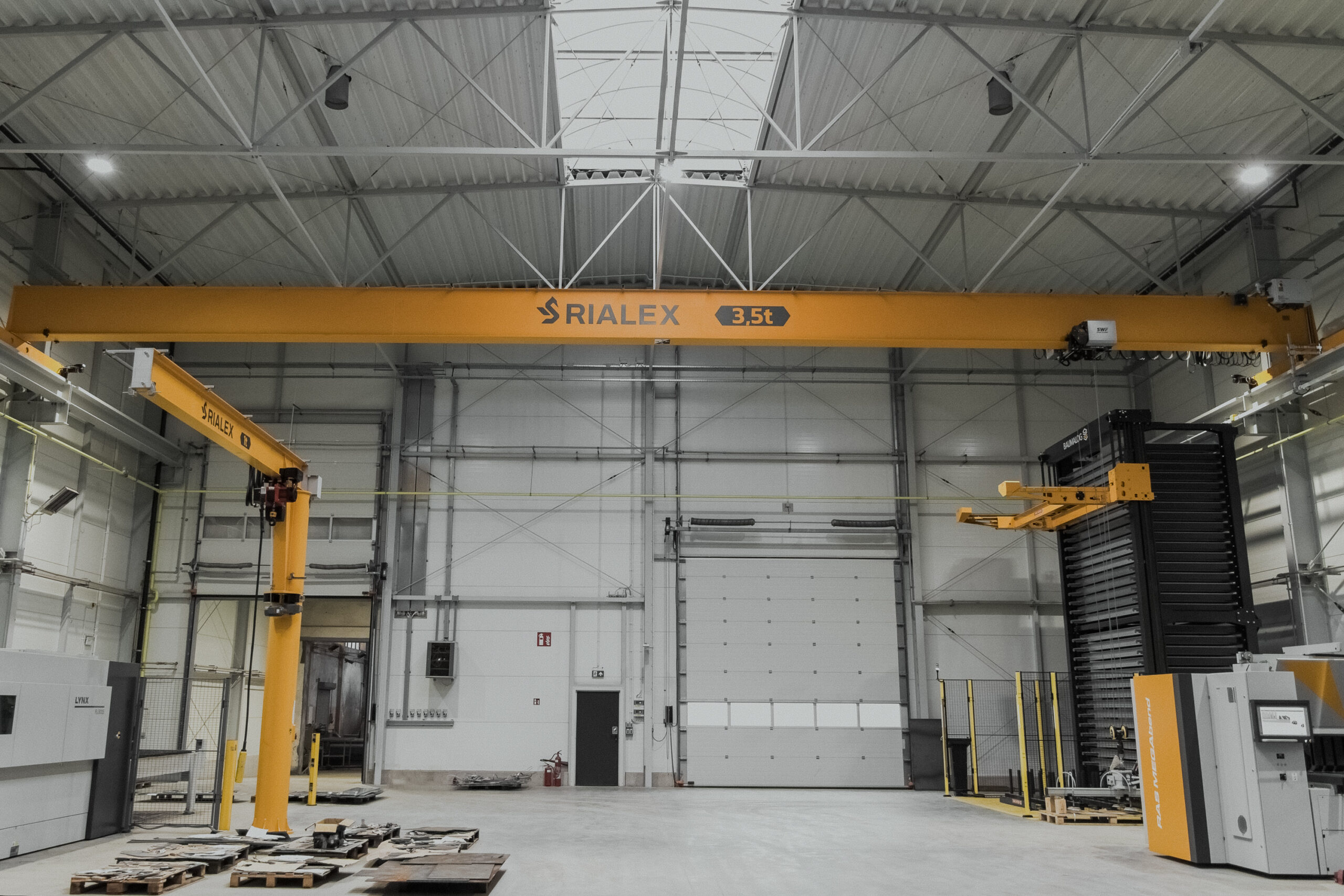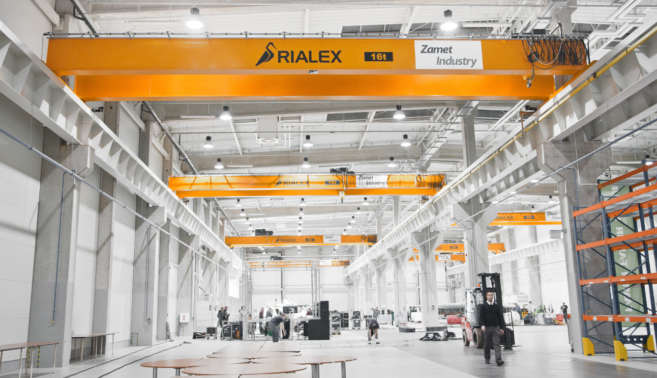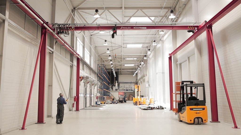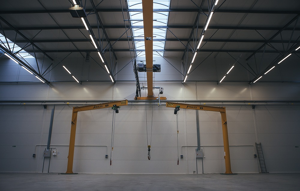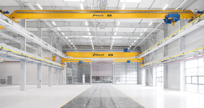 Systemy dźwignicowe Rialex w hali produkcyjnej Bucher Unipektin